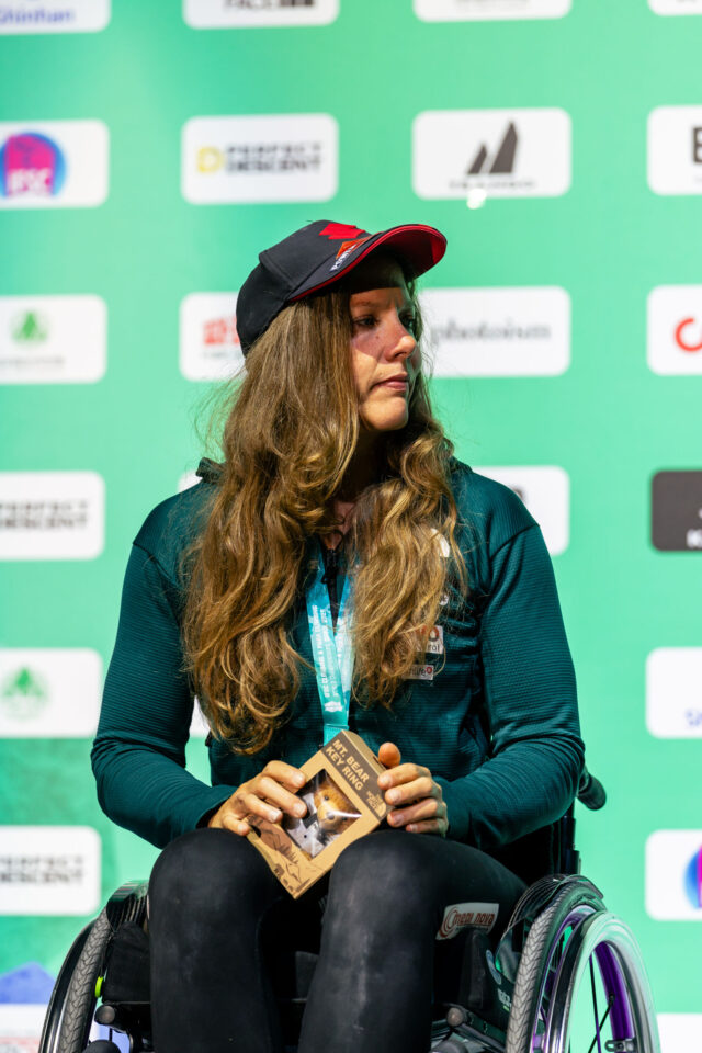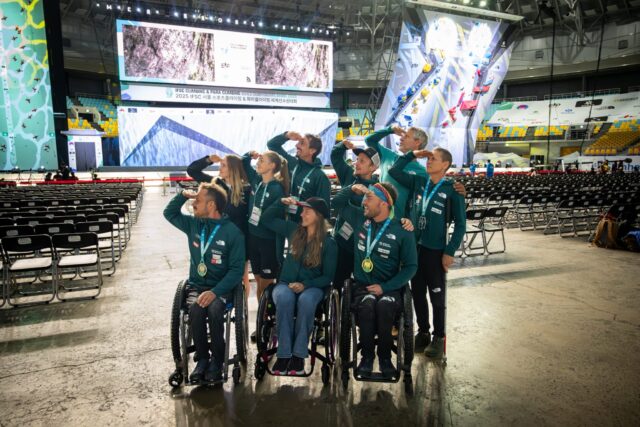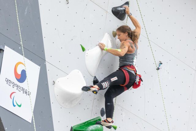 Die erste Route gab mir ein großartiges Gefühl. Ich war schnell im Flow, kämpfte mich durch, und mit Hilfe des Supports schaffte ich das fast Unmögliche: ich war am Top angekommen. Ich war überglücklich. Doch mein Körper hasste mich dafür. Die Spastik setzte massiv ein, Michi brauchte viel Kraft, um mich zu behandeln, und ich musste sofort wieder für die zweite Route aktivieren.